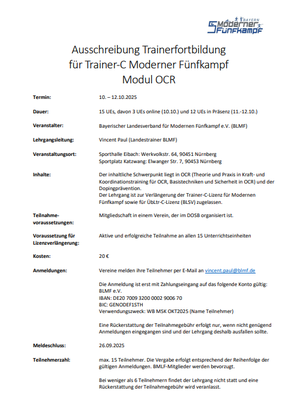 Trainerfortbildung für Trainer-C Moderner Fünfkampf Modul OCR