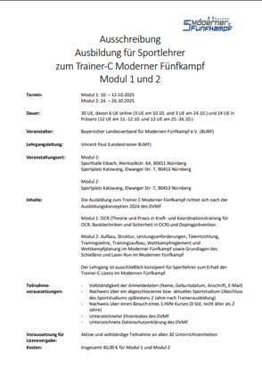 Ausbildung für Sportlehrer zum Trainer C Moderner Fünfkampf Modul 1